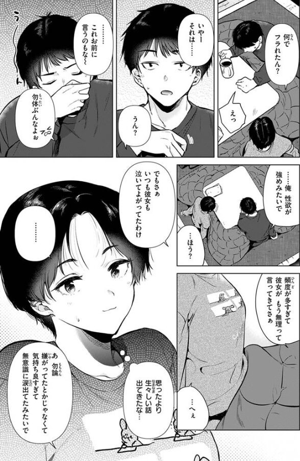 仕事帰りに幼馴染の家で一晩過ごすことになり、性欲が強すぎて元カノに振られた男の性癖を聞いてたらムラムラしてききしまい…
