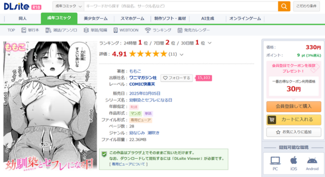 DLsiteは20年以上実績のある合法の電子書籍サイトです。