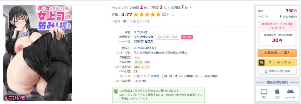 【尻で女を見分ける俺は女上司の弱みを握る】最安値サービスはDLSite
